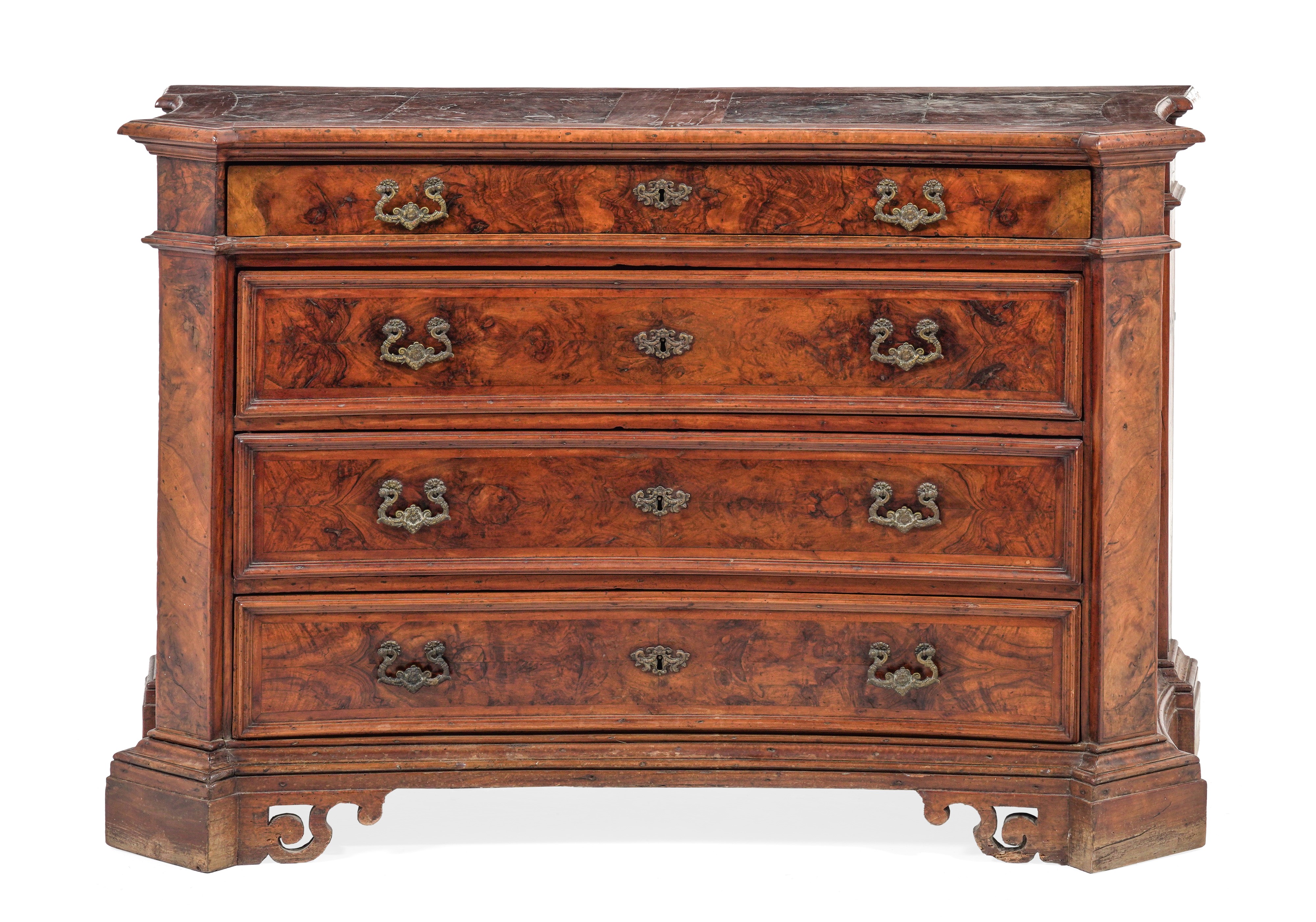 Cassettone lastronato in radica. Italia centrale XVII-XVIII secolo