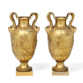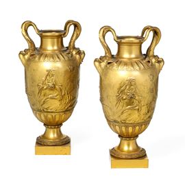 Coppia di vasi in bronzo di gusto neoclassico. Francia, XIX secolo (fonderia Barbedienne ?)