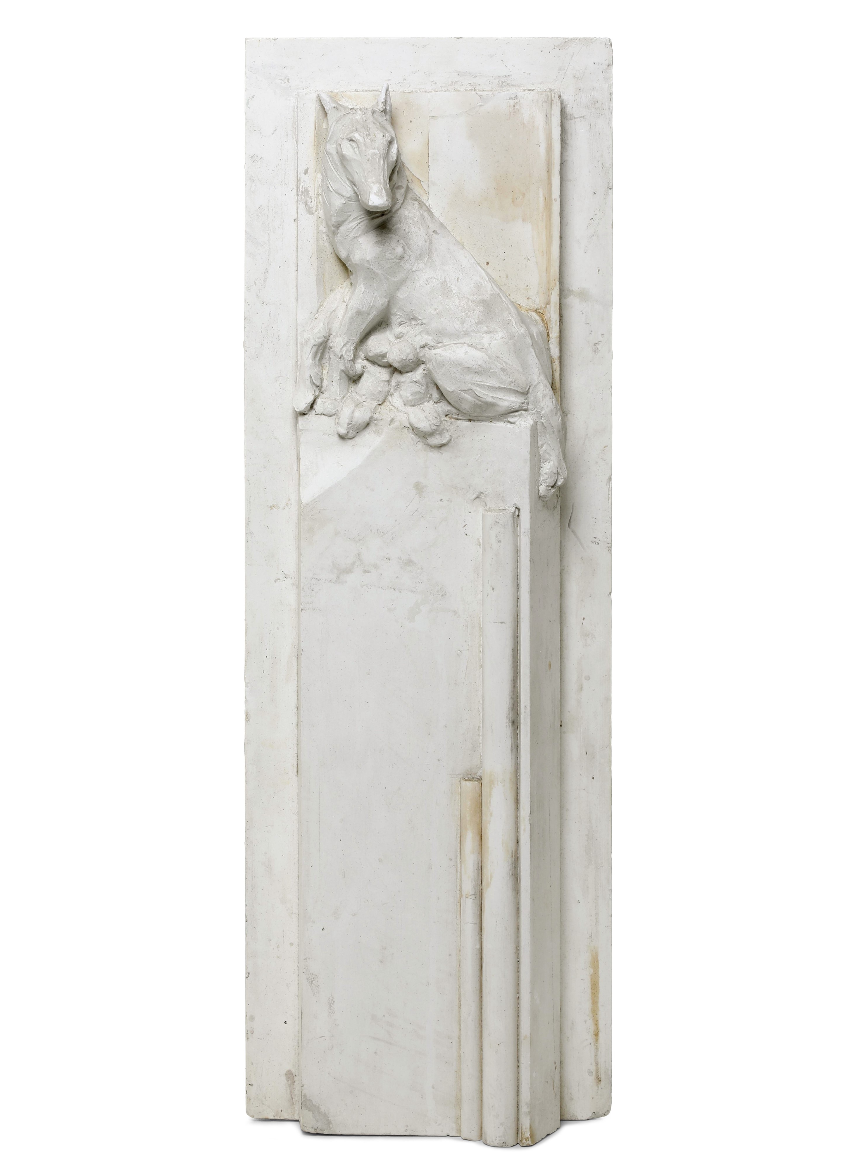 Bozzetto originale per una delle due decorazioni plastiche in marmo e bronzo di un portale dell’atrio della scuola magistrale Giosuè Carducci a Roma