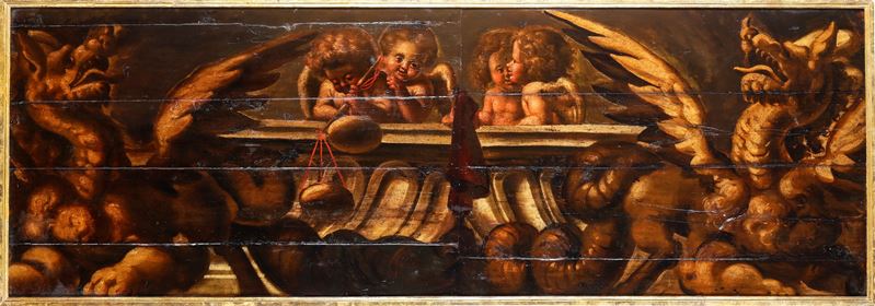 Scuola emiliana del XVI secolo Allegoria della Giustizia con putti e grifoni