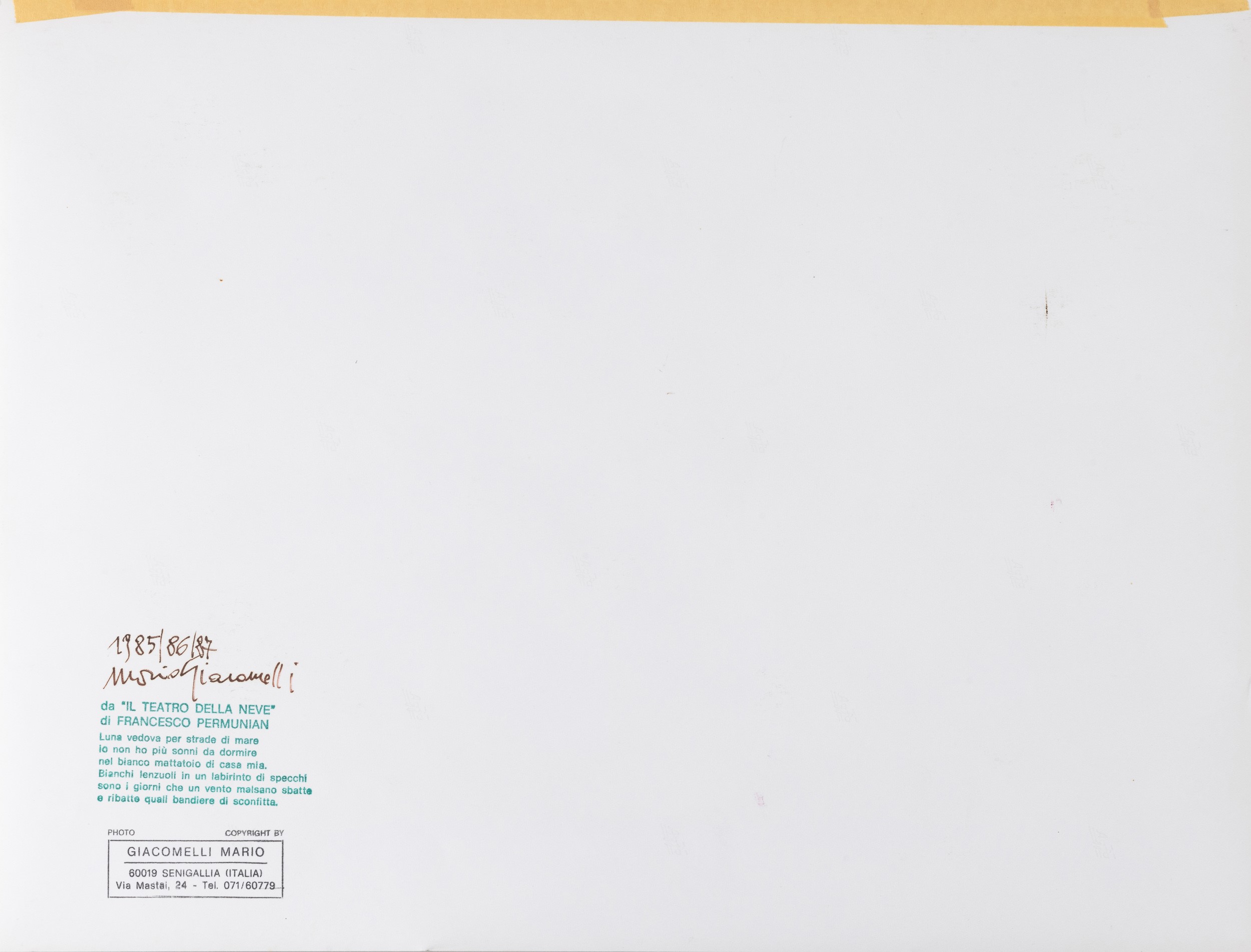 Timbri Mario Giacomelli e G. Permunian con testo al retro