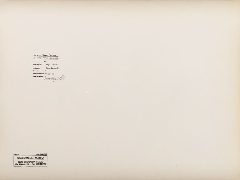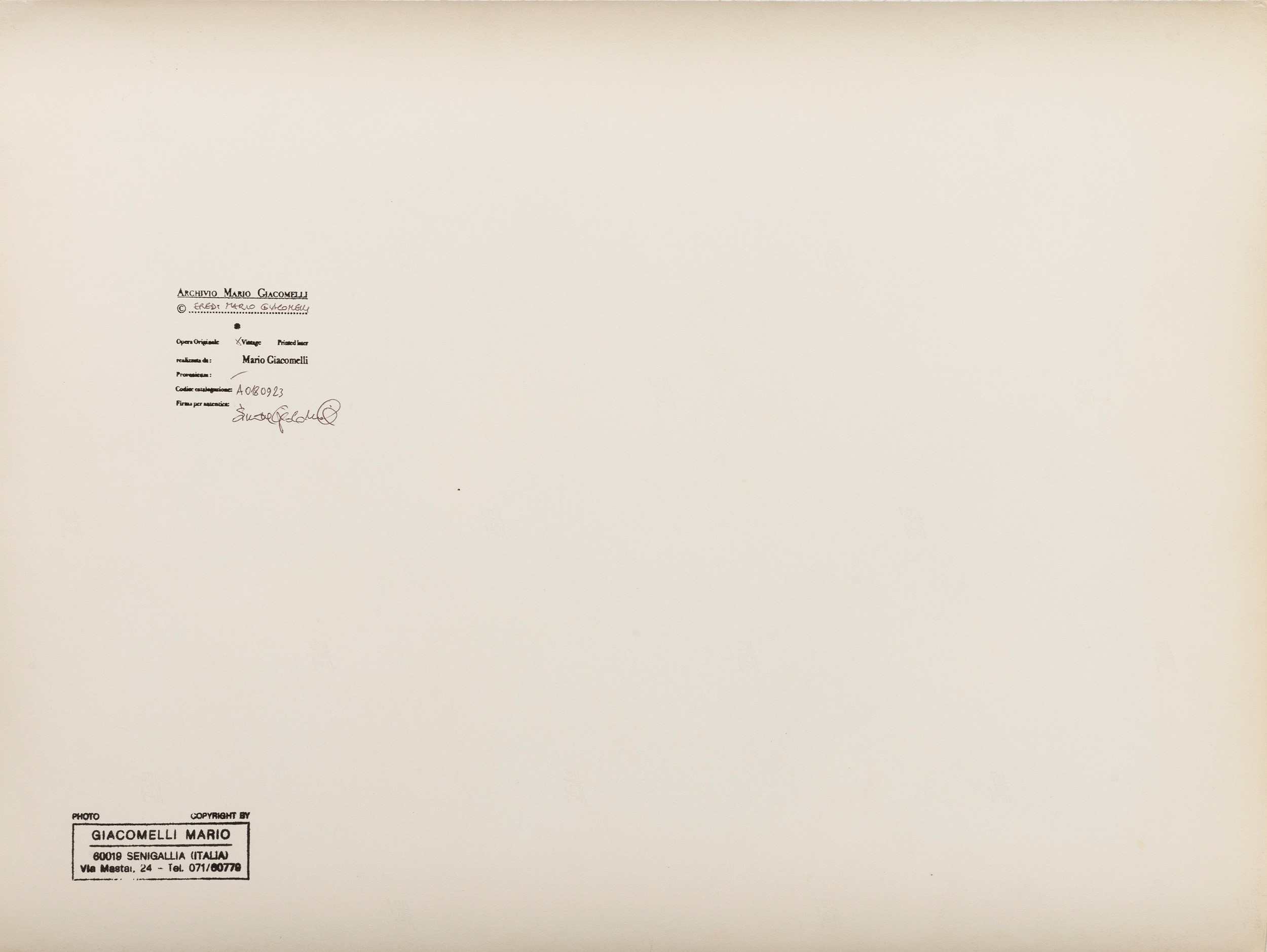 timbro Eredi Mario Giacomelli al retro con numero di archiviazione