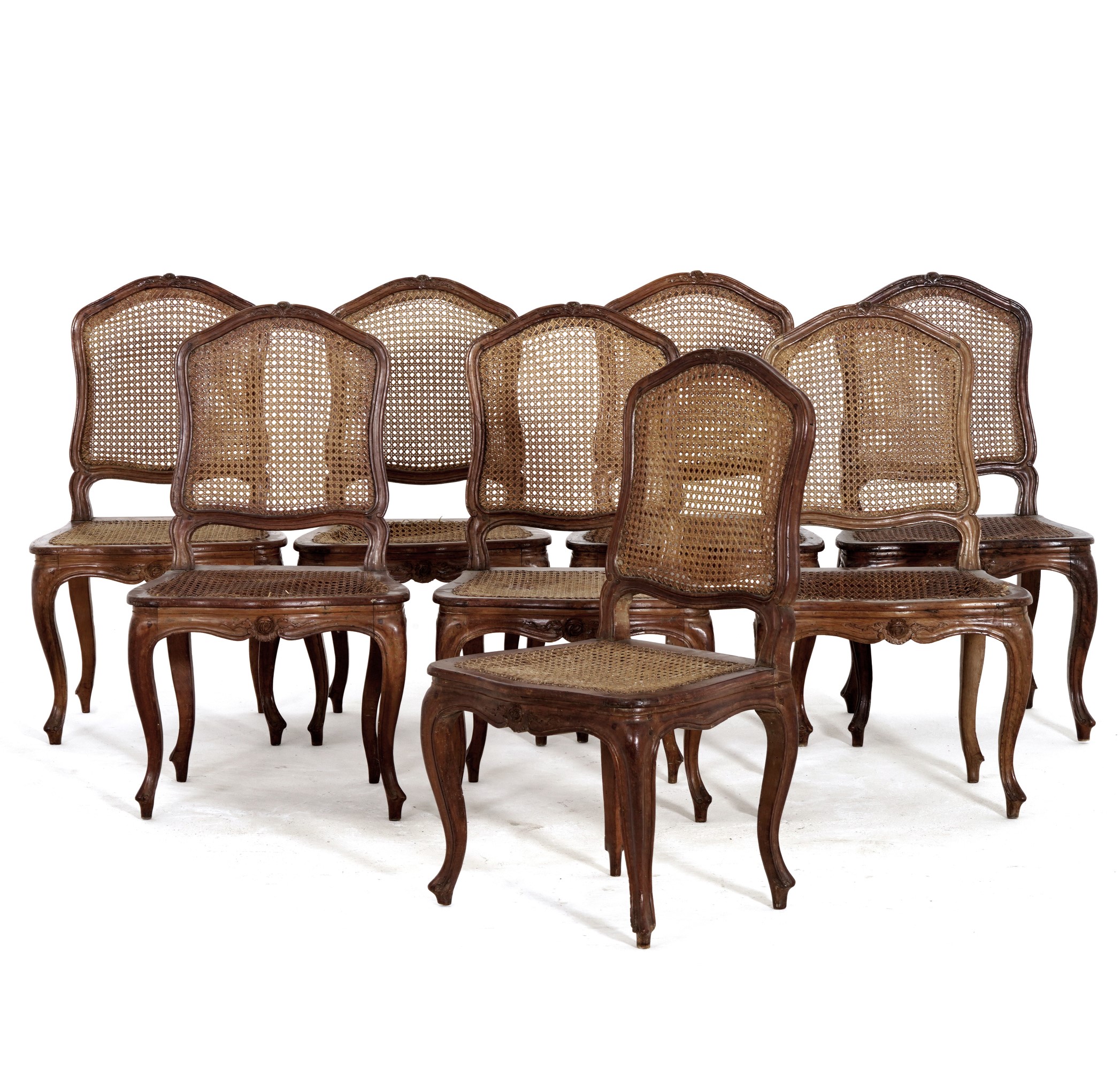 Otto sedie in legno intagliato. XVIII secolo