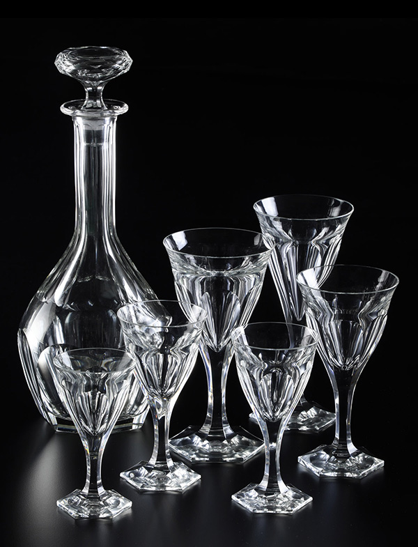 Cristallo. Marca: simbolo grafico della manifattura con “Baccarat France”. Conservazione: vedi lista. Il modello Talleyrand è derivato dall’Harcourt con il piede circolare sormontato da una sfera dalla quale sorge il calice con sei grandi sfaccettature. [..]