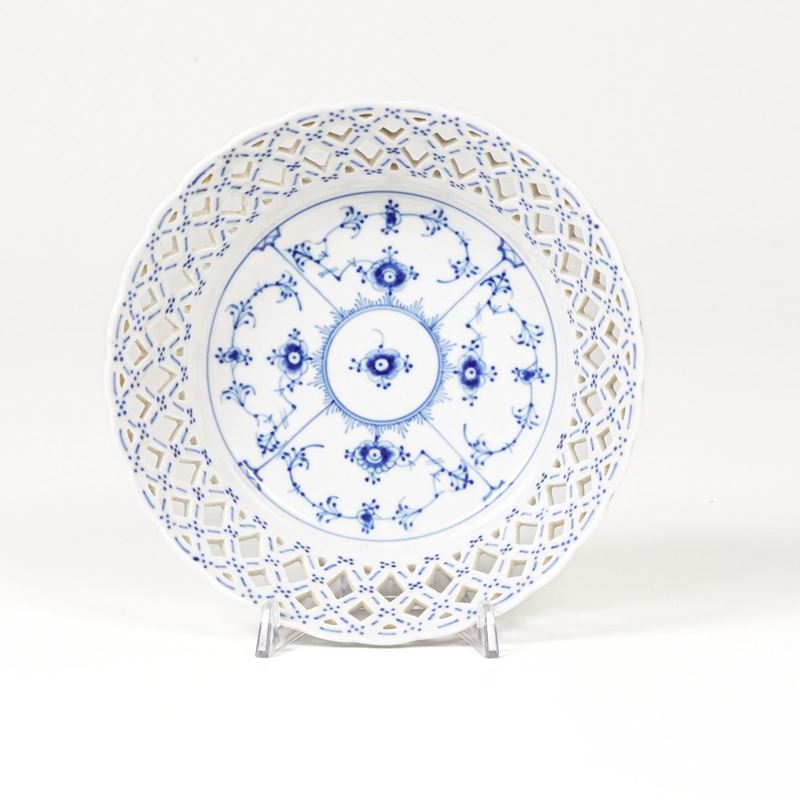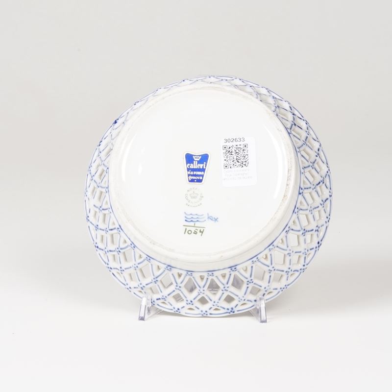 Cestino “Blue Fluted Plain”. Danimarca, Manifattura Royal Copenhagen, 1975-1979.