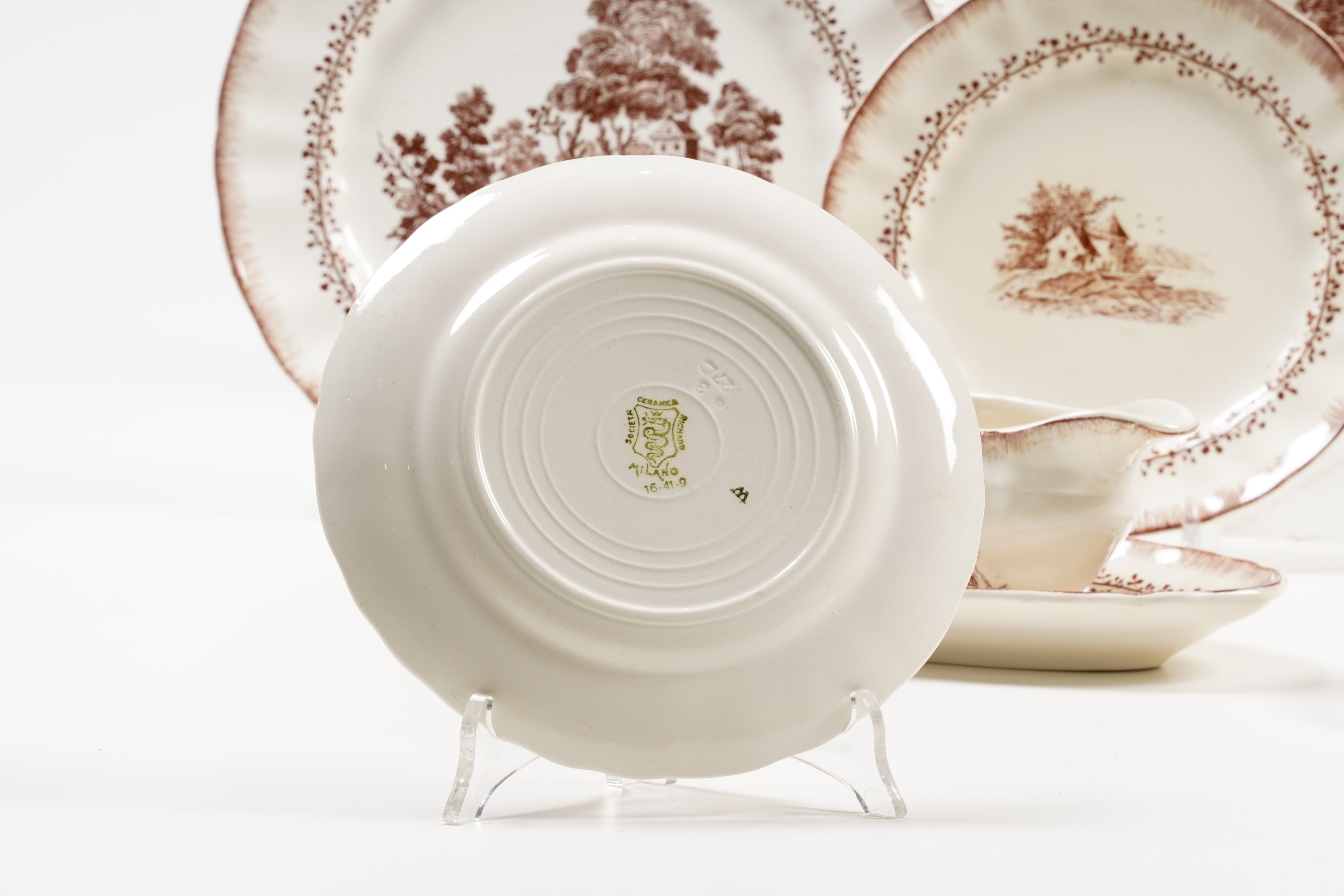 Terraglia. Marca: scudo con biscione coronato e "Società Ceramica Richard Milano" in verde. Conservazione: ottima; vedi elenco.