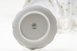 Il servizio per 12 persone conta 27 pezzi ed è così composto: 12 tazze da tè (altezza cm 6,5); 12 piatti da torta (diametro cm 19,5); 1 teiera (altezza cm 14,5); 1 lattiera (altezza cm 10,5); 1 zuccheriera (altezza cm 9,3).