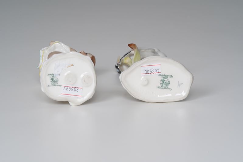 Due figurine, ballerina e airone. Germania, Manifattura Hutschenreuther, secondo quarto del XX secolo.