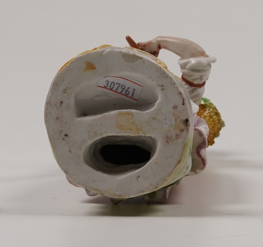 Porcellana. Marca: assente. Altezza cm 20,3. Conservazione: ottima; insignificanti mancanze; piccolo restauro al bastone e al mignolo.