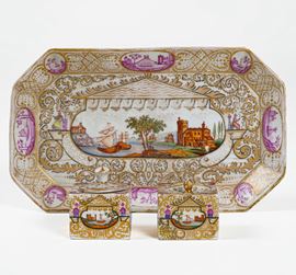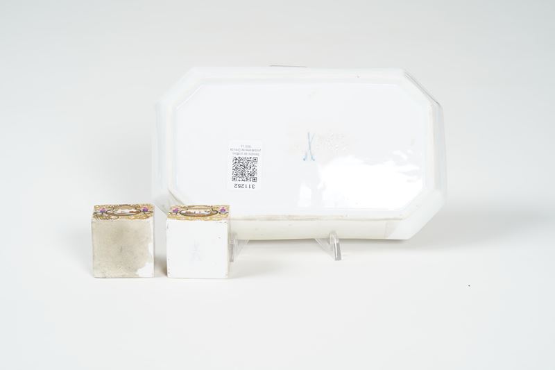 Servizio da scrittoio. Meissen, XIX secolo (porcellana). Pittore indipendente, 1900 circa (decorzione).