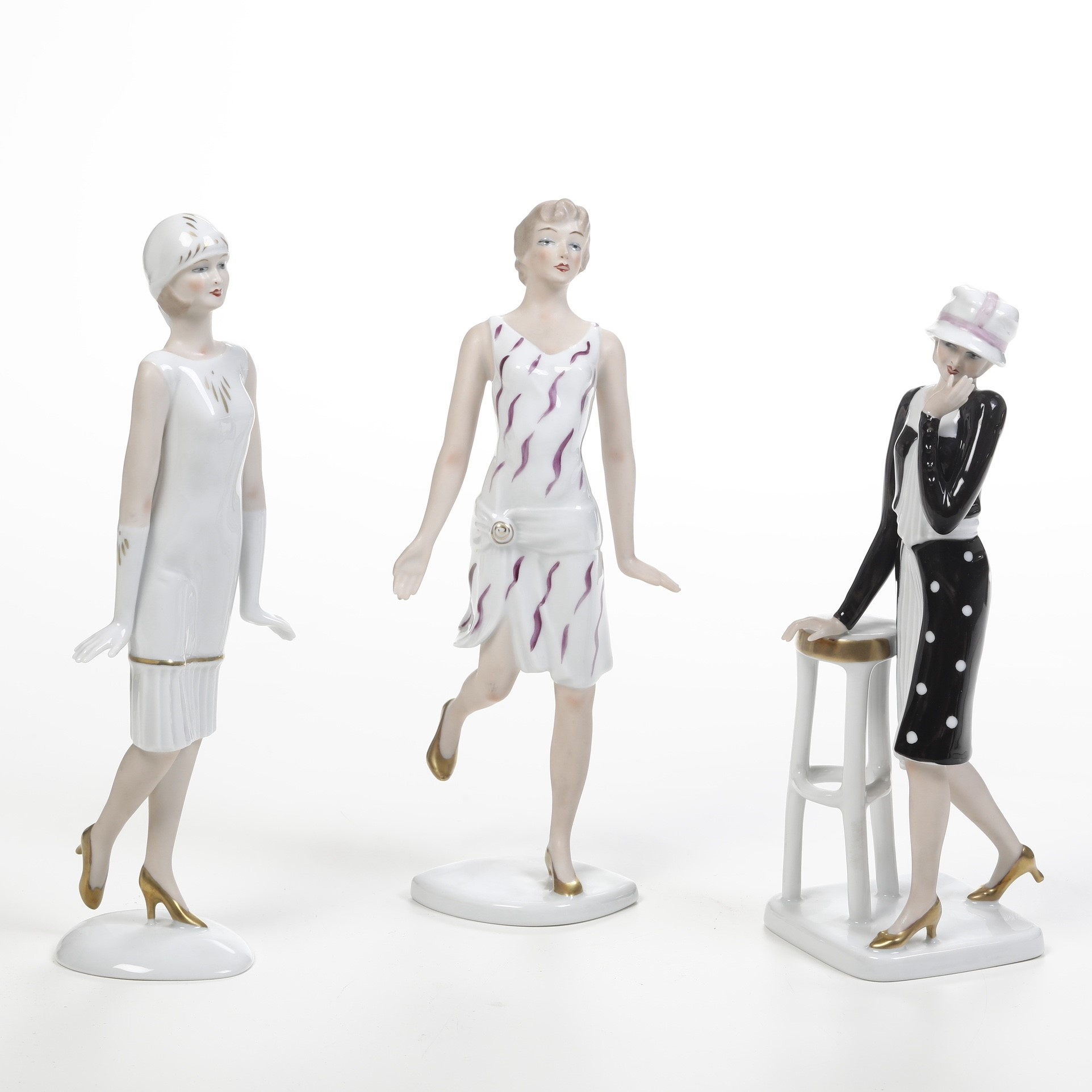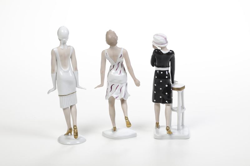 Tre figurine. Germania,Turingia, Manifattura di Wallendorf, terzo quarto del XX secolo.