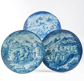 Tre grandi piatti. Savona, primi del XVIII secolo.