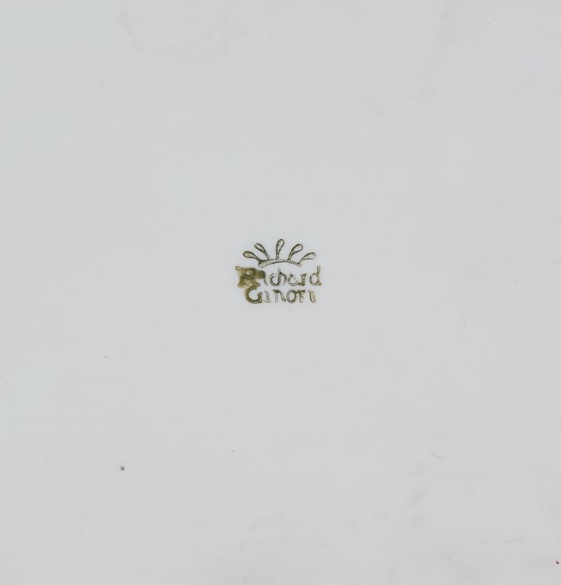 Porcellana. Marca: “Richard Ginori” con corona in verde; Dimensioni: cm 28,7x24. Conservazione: ottima.