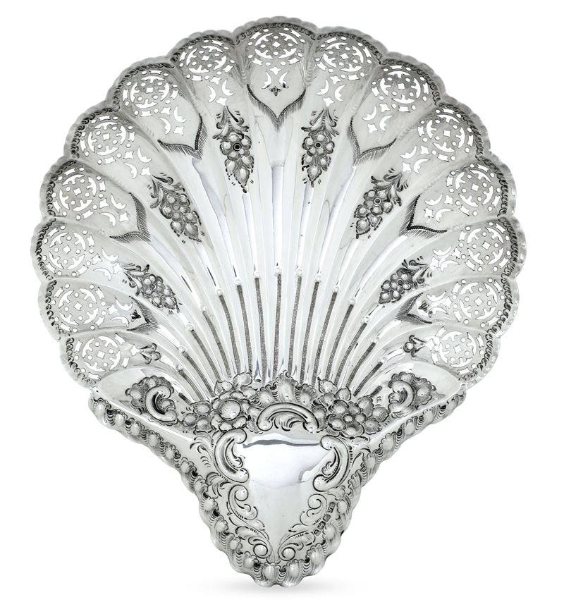 Centrotavola a guisa di conchiglia. Sheffield 1895, Argentiere J. Dixon & Sons