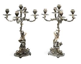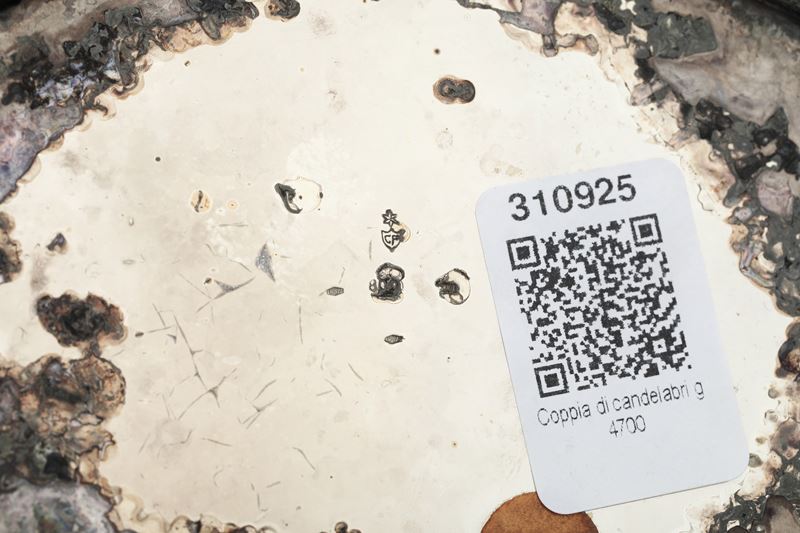 Coppia di candelabri. Argenteria milanese del XX secolo, argentiere Francesco Caputo