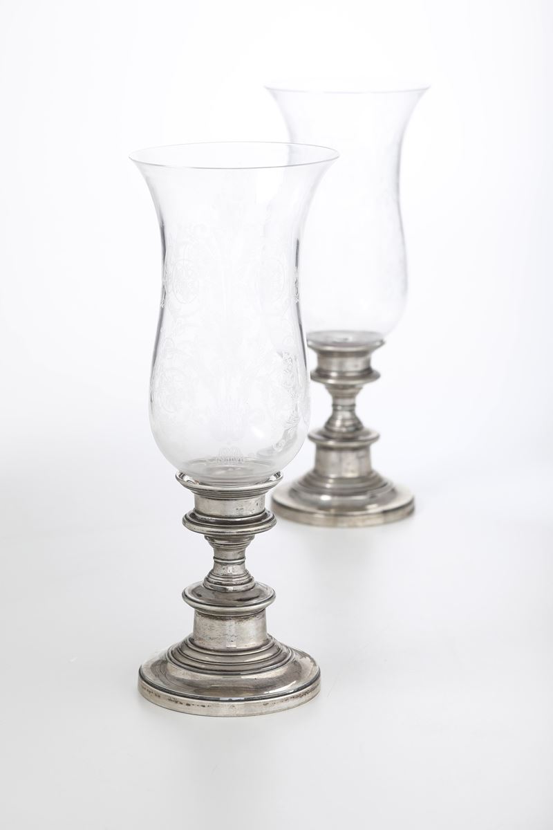 Coppia di candelieri. Argenteria italiana del XX secolo, argentiere Ricci & C., Alessandria