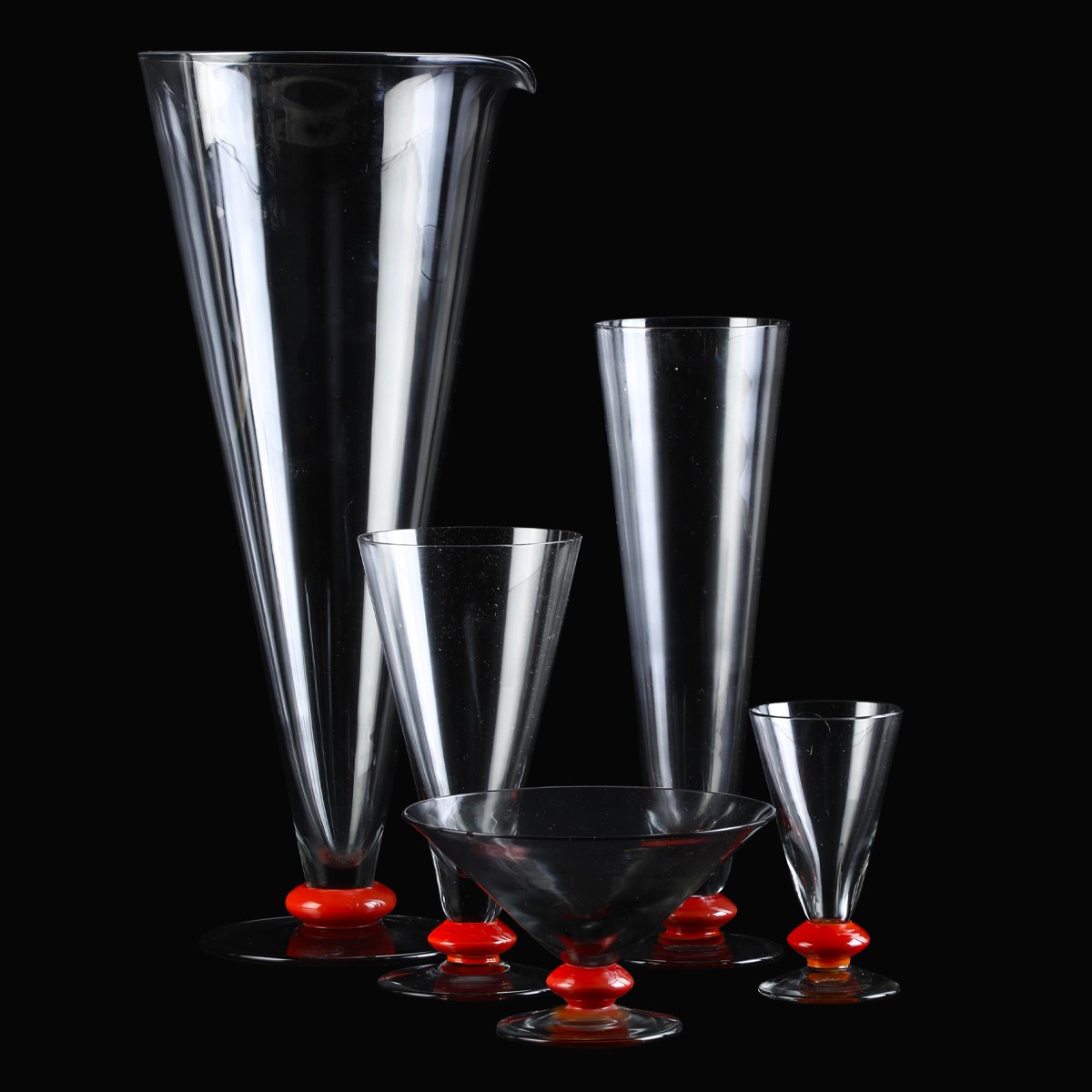 Vetro. Marca: ogni pezzo riporta l’incisione "Venini" e la data; un calice con etichetta "Venini". Conservazione: ottima