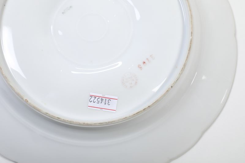 Porcellana dipinta in policromia con due asparagi. Marca: “Ginori” in verde; “Decorazione eseguita da Richard-Ginori” in rosso. Diametro cm 24,5. Conservazione: ottima