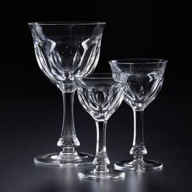 I calici "Lady Hamilton”, introdotti da Moser nel 1934 e prodotti ancora oggi, hanno le coppe con grandi sfaccettature che infrangono la luce incidente in mille raggi e ricordano un diamante. Soffiati a bocca nella storica manifattura ceca sono intagliati e lucidati a mano