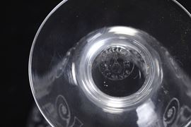 Cristallo. Marca: simbolo grafico con "Baccarat France" inciso all'acido. Conservazione: ottima; un calice con piccola sbeccatura incollata; un calice da vino molato