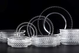 Il design di questi cristalli è stato creato nel 1933 da René Lalique. Presentano la superficie liscia con il bordo formato da una catena di perle.