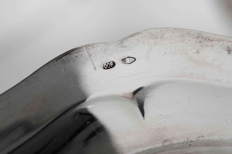 Dodici piattini in argento. Argenteria italiana del XX secolo. Bollo dell'argentiere consunto, Alessandria