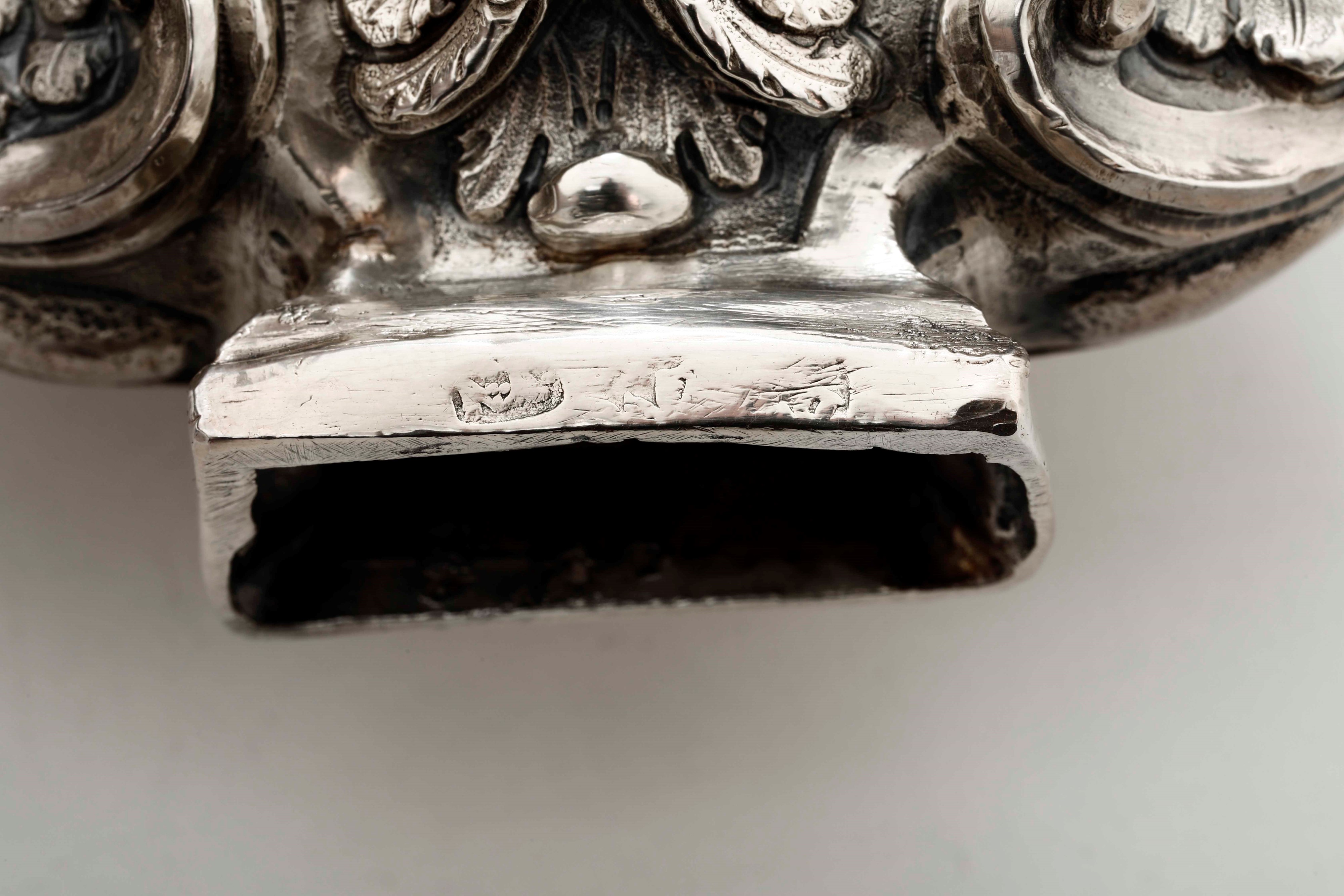 Due finali di croce in argento sbalzato con cherubini. Argenteria barocca italiana del XVIII secolo (Napoli?) Bolli consunti [..]