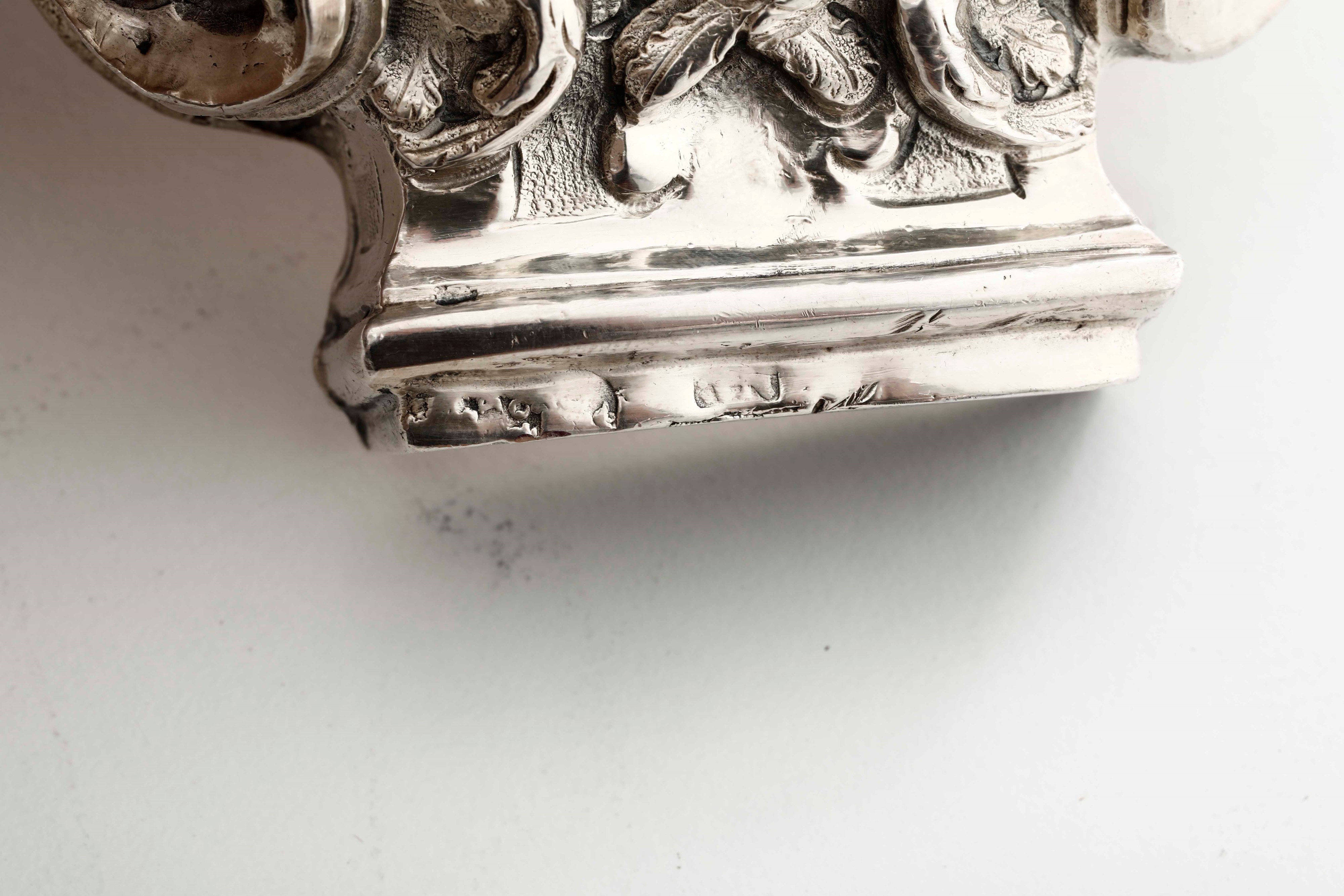 Due finali di croce in argento sbalzato con cherubini. Argenteria barocca italiana del XVIII secolo (Napoli?) Bolli consunti di difficile lettura