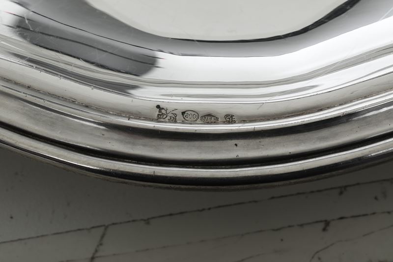Grande piatto. Argenteria italiana del XX secolo. Argentiere Peruggia & C, Alessandria