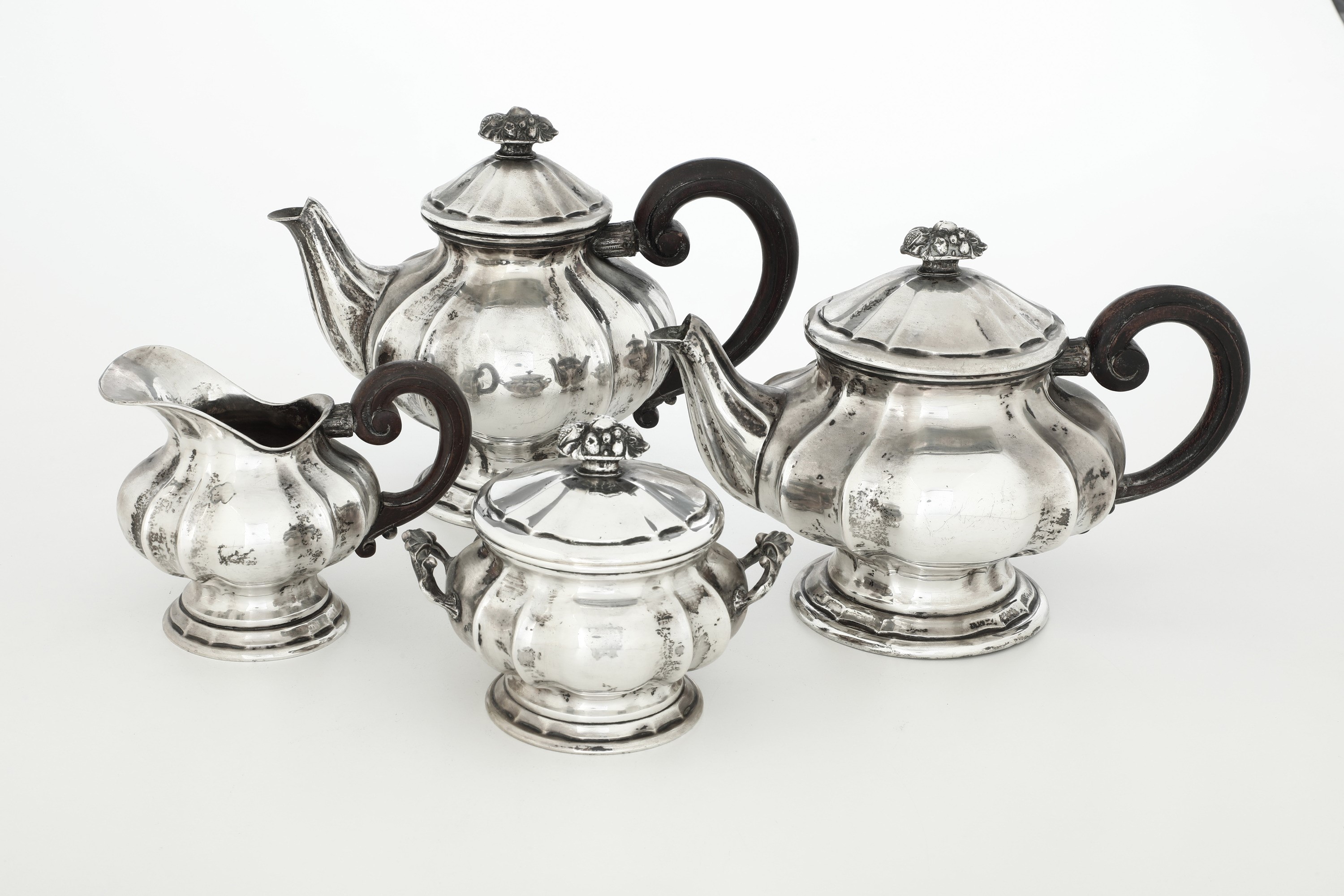 Servizio da tè e caffè. Argenteria milanese del XX secolo, marchio con fascio littorio in uso dal 1935 al 1945