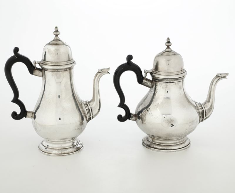 Teiera e caffettiera. Argenteria italiana del XX secolo. Argentiere Ricci & C., Alessandria