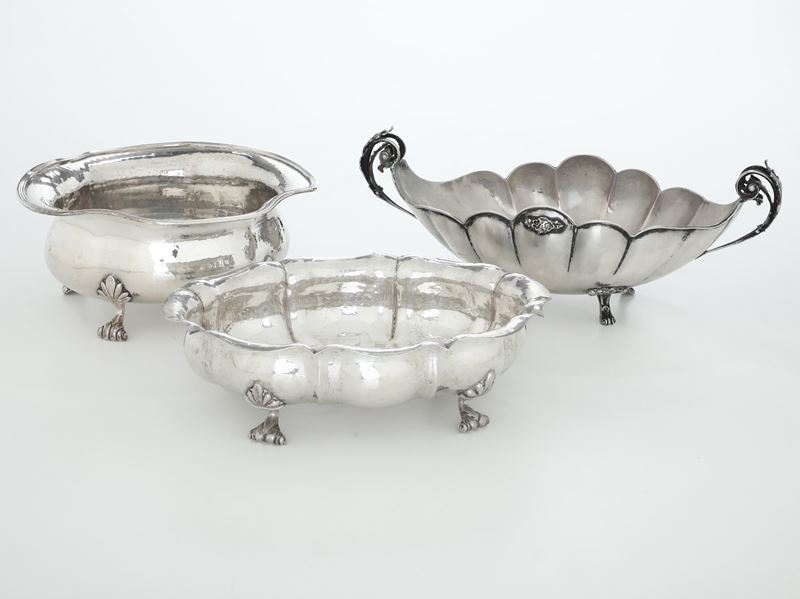 Tre centrotavola. Argenteria italiana del XX secolo, vari argentieri