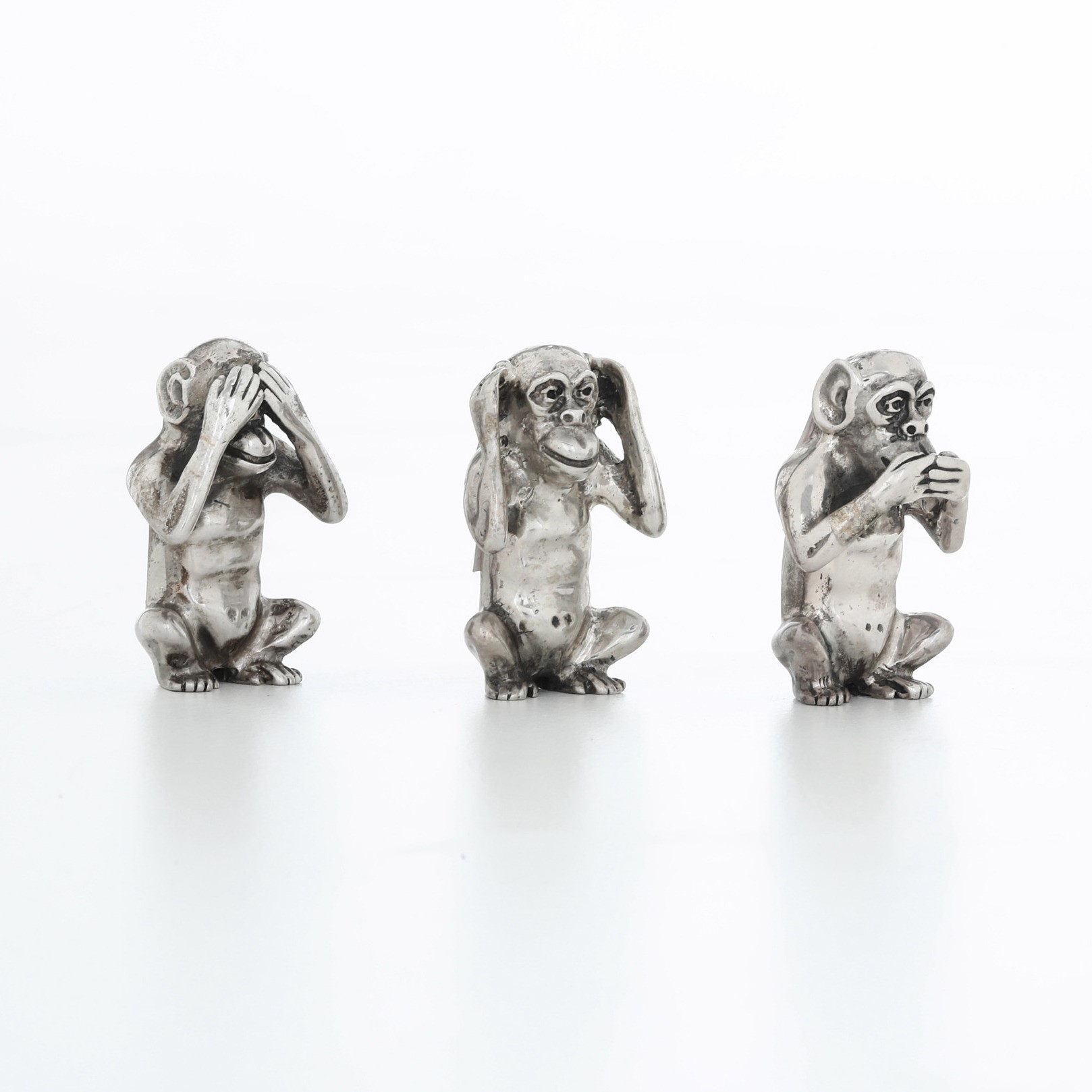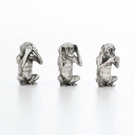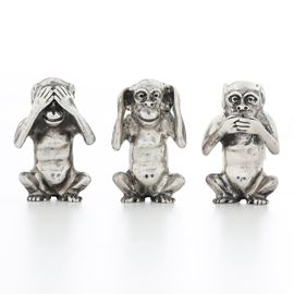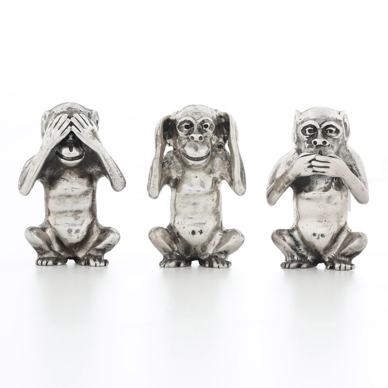Tre Scimmie "Non vedo, non parlo, non sento". Argenteria veneta del XX secolo, argentiere F.lli Menegazzi, Vicenza
