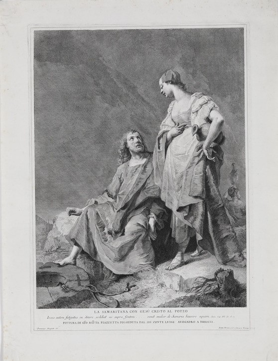 Pietro Monaco-Domenico Maggiotto. La samaritana con Gesù Cristo al pozzo. Incisione eseguita da Maggiotto per riprodurre un quadro di Giovan Battista Piazzetta.