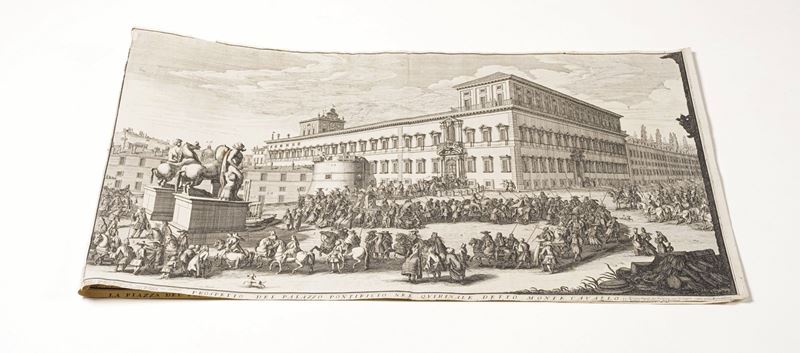 Wouters Gomar (1649 – 1696) La piazza del popolo abbellita con li nuovi edifici et veduta della città di Roma come si trova al presente - Prospetto del palazzo pontificio nel Quitinale detto monte cavallo, Roma, Domenico De Rossi, 1692.