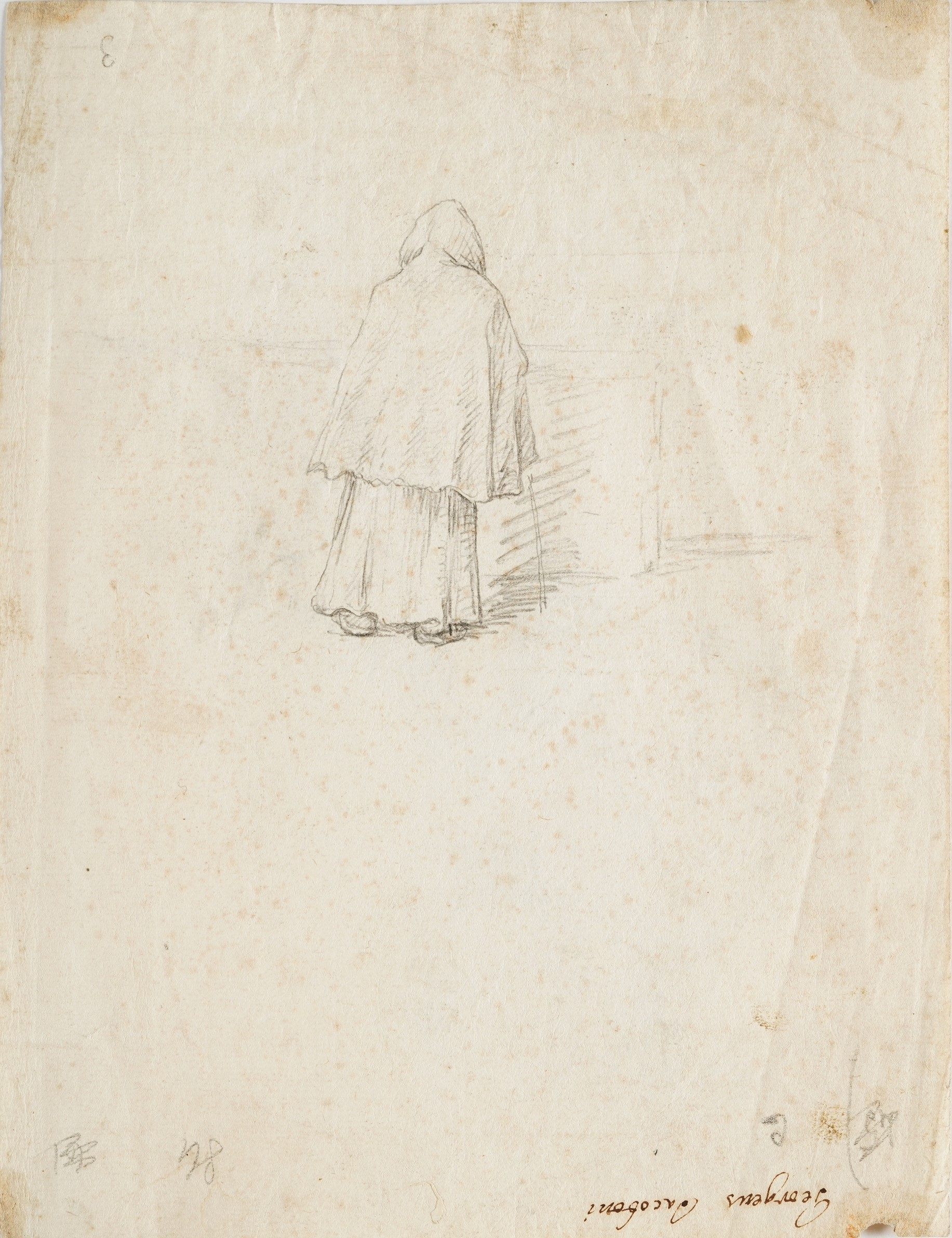al verso riporta studio per figura di spalle incappucciata e antica attribuzione all'artista