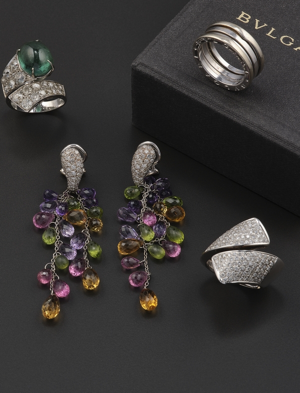 montature in oro 750/1000 e gemme. All'interno dell'otto sono presenti anche 5 anelli, 2 collane, 1 pendente, 1 orologio e 2 cammei in lega metallica