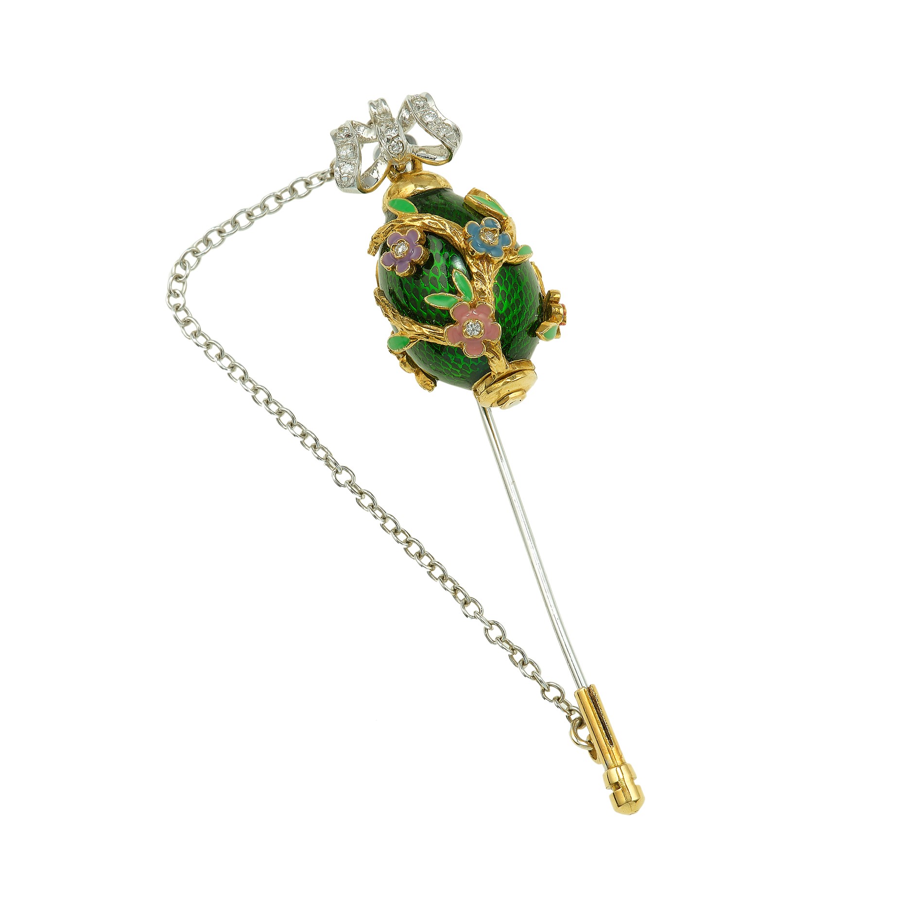 Spillone con smalti policromi e diamanti