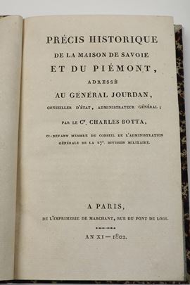 5) Charles Botta Precis historique de la Maison de Savoie et du Piemont ....;