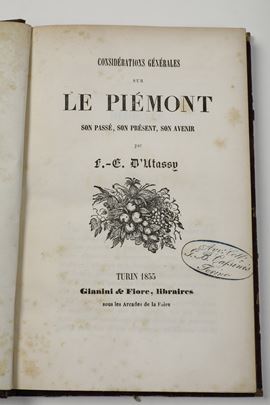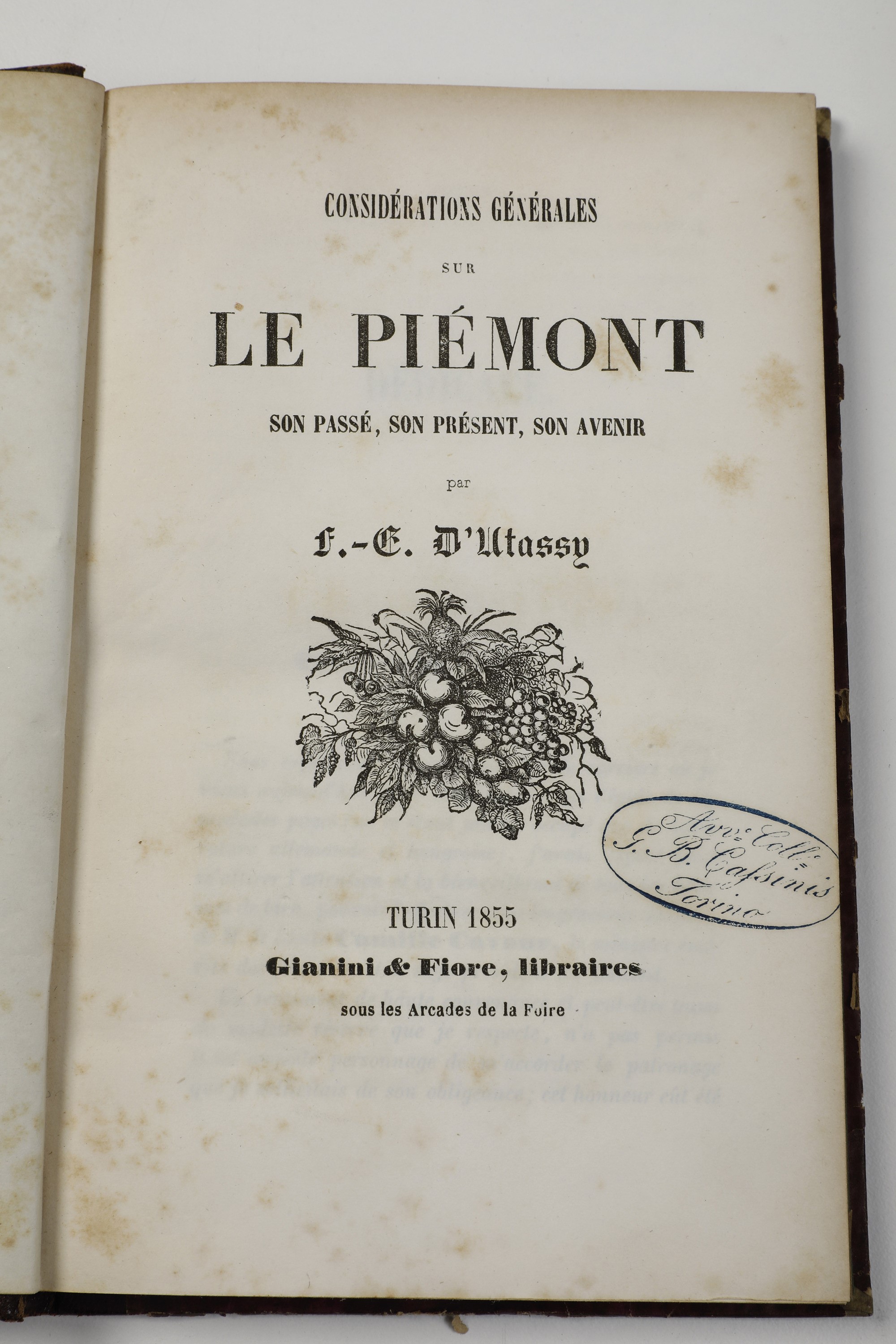 3) F.C. D'Utassy Considerations generales sur le Piemonte son passè, son present, son avenir;