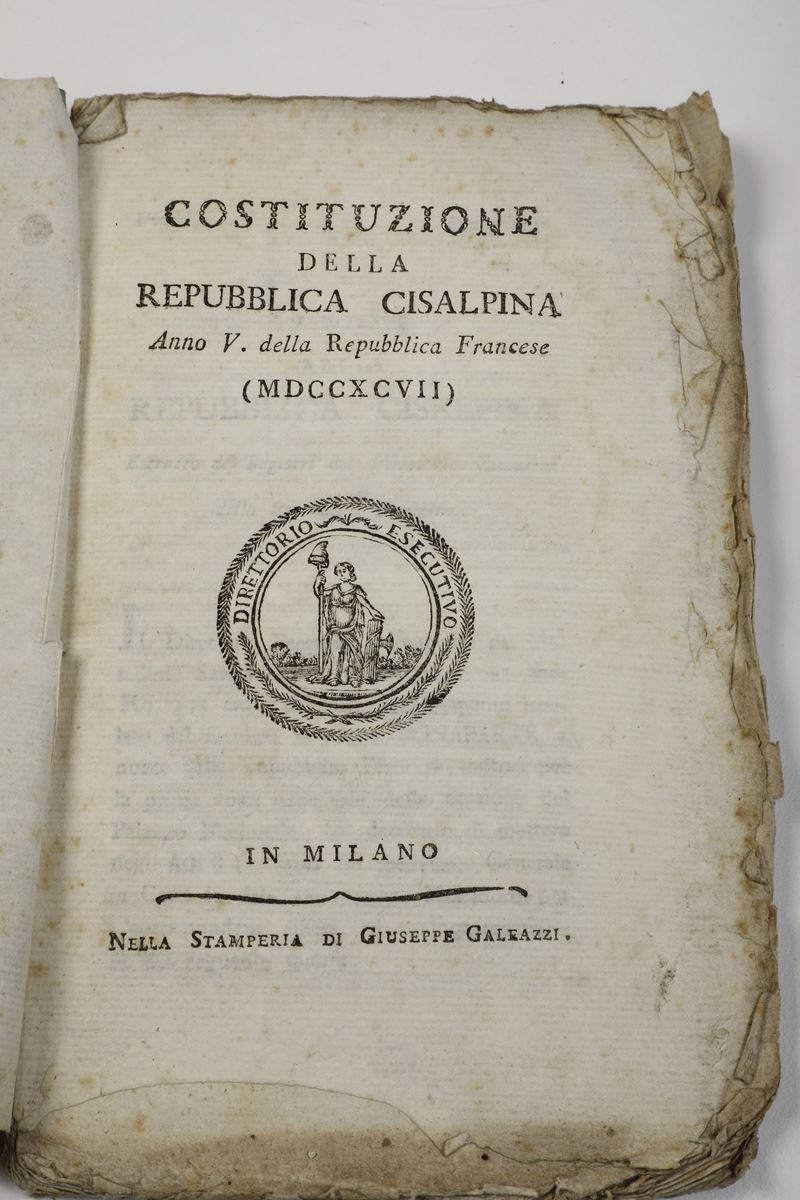 Titoli: 1) Costituzione dellaRepubblica Cisalpina Anno V della Repubblica Francese (MDCCXCVII) 1797 Stamperia di Giuseppe Galeazzi Milano