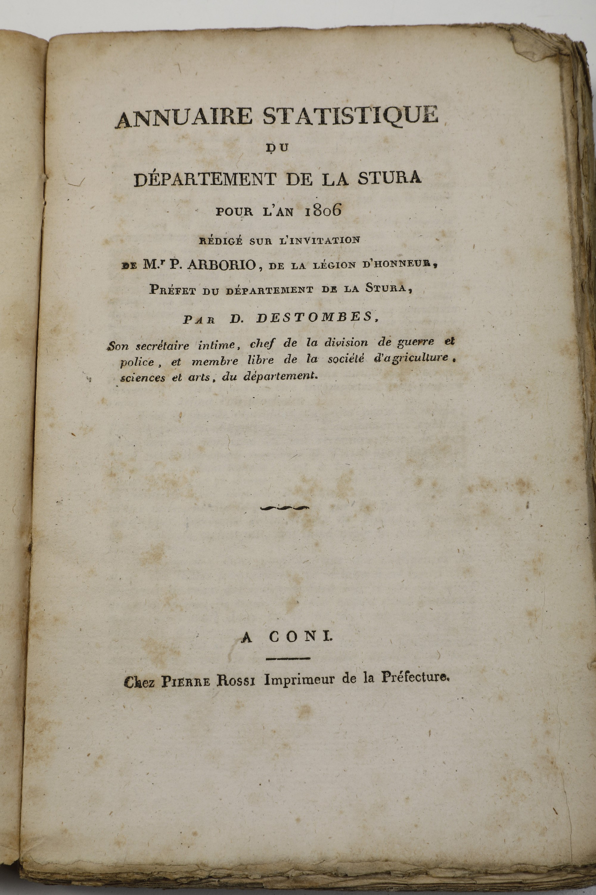 6) D. Destombe Annuaire Statistique du Departement de la Stura pour l'an 1806.