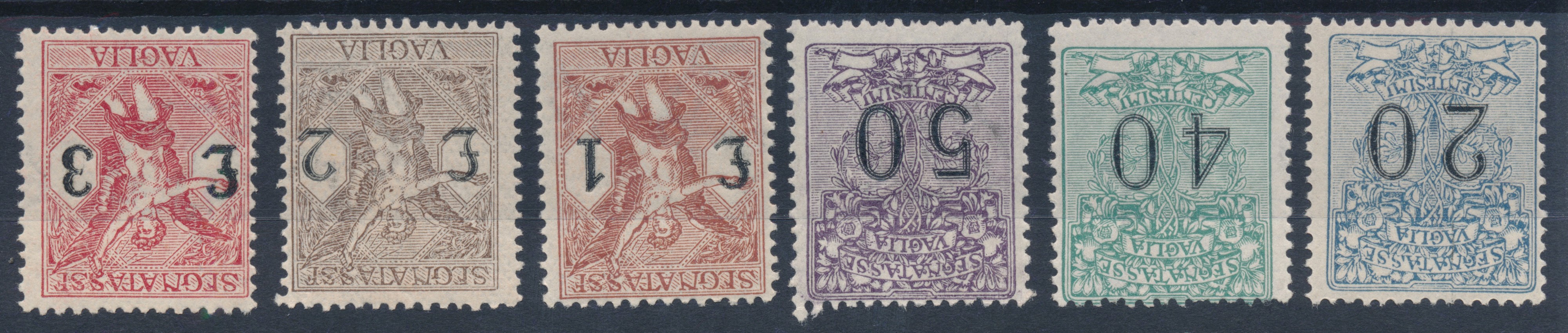 1824 – Regno d’Italia - Segnatasse per vaglia – Soggetti allegorici. Cifre del valore in nero – Serie completa (Sass. S.2400).