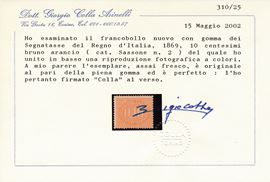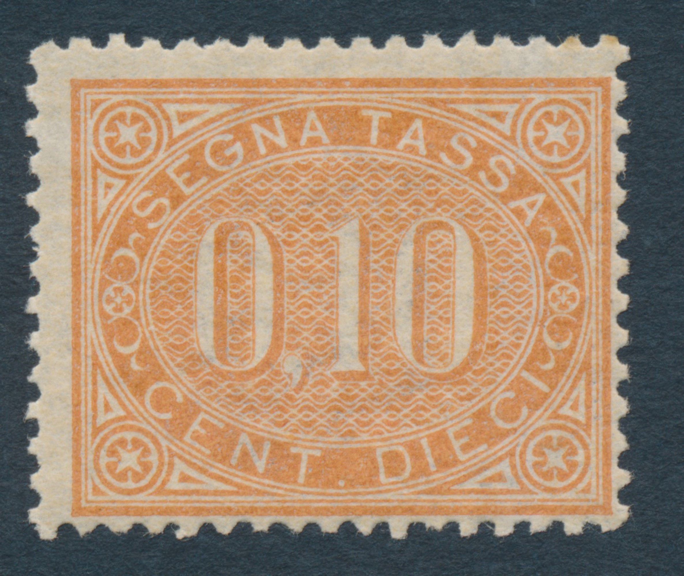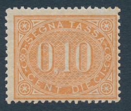 1869 - Regno d’Italia - Segnatasse - 10 cent. bruno arancio (Sass.2).