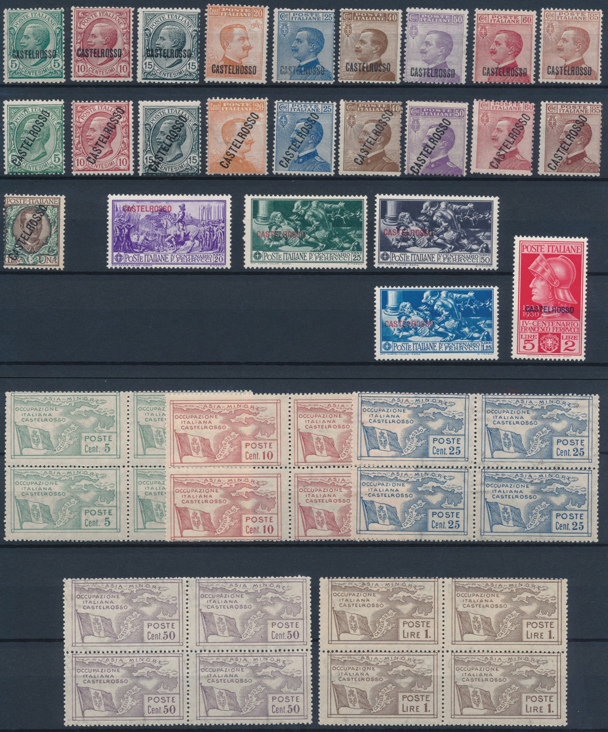 1922-1930 - Regno d’Italia – Colonie e Possedimenti – Castelrosso – Le prime quattro emissioni (Sass. S.1, S.2, S.3, S.4) di cui, le seconda, in quartine.