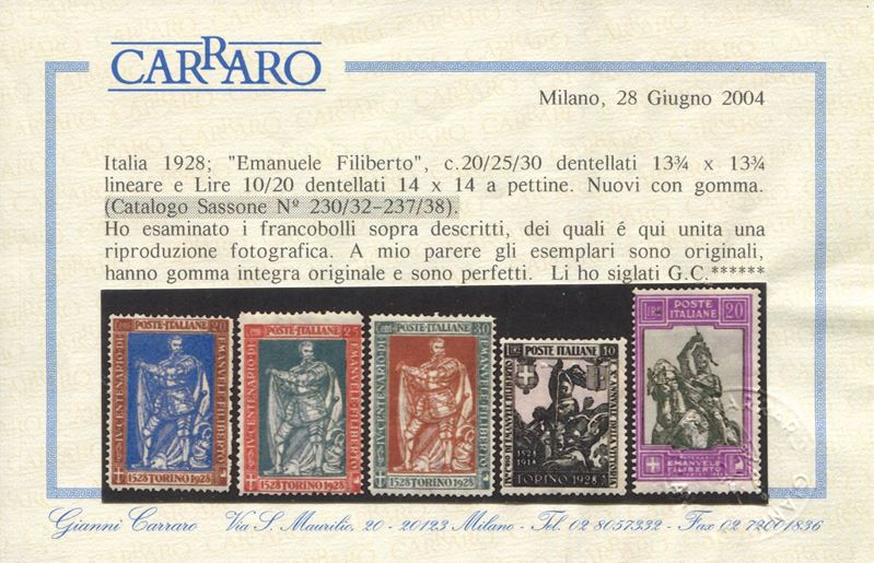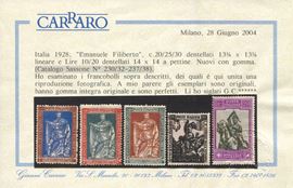 Serie completa, gomma integra, Cert. Carraro per gli alti valori.