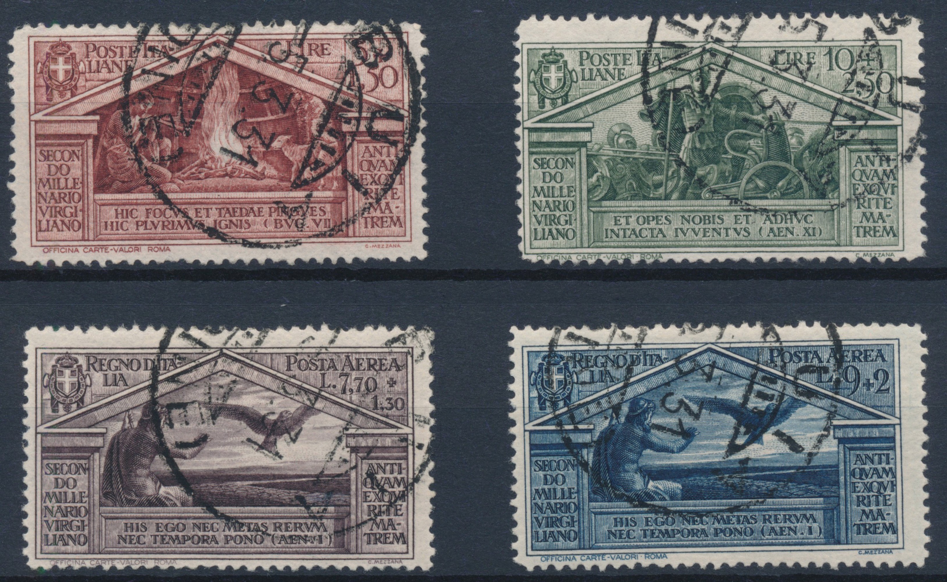 1930 – Regno d’Italia – “Bimillenario della nascita di Virgilio” – I quattro alti valori usati (Sass. 289/290 e P.A. 23/24).
