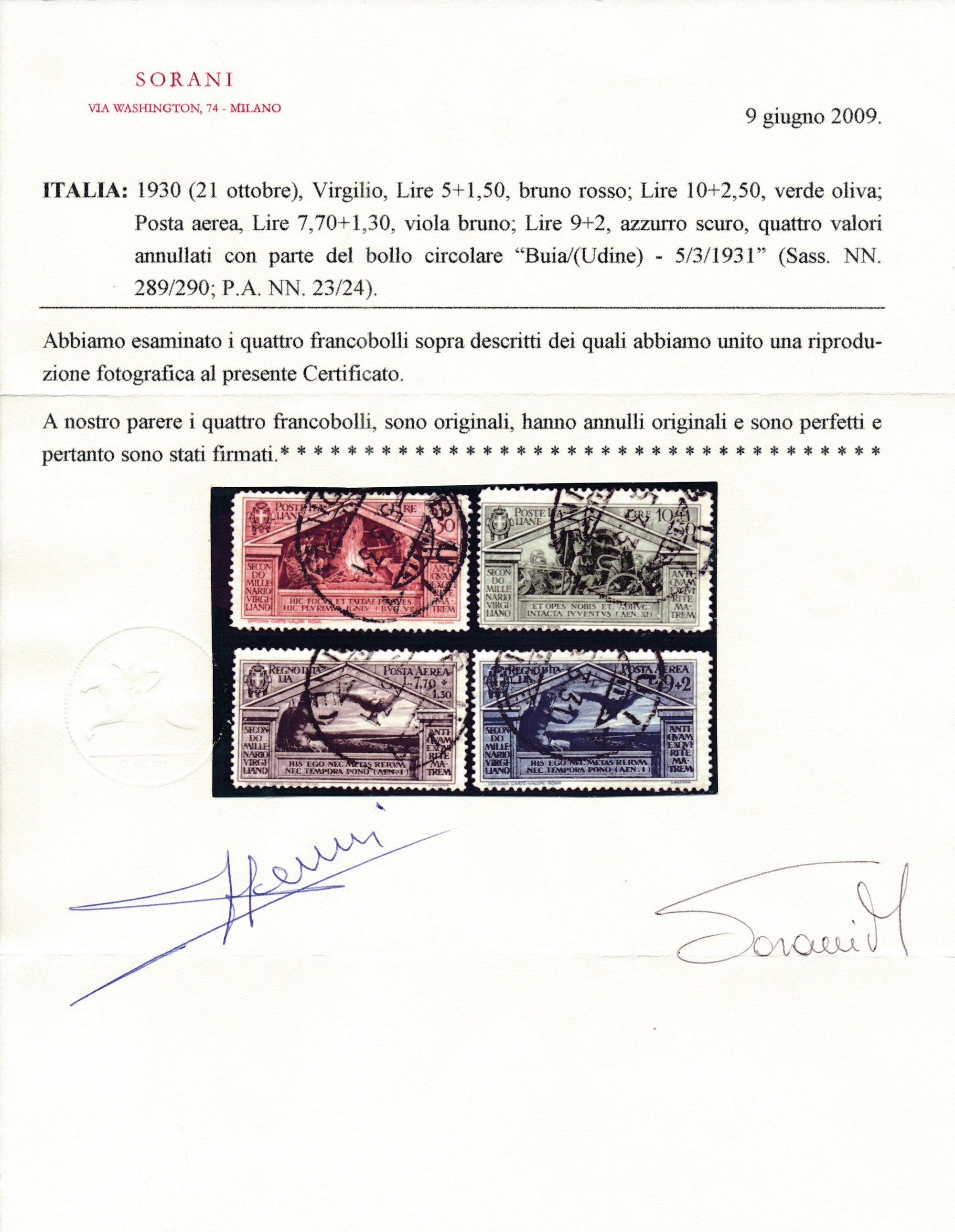 1930 – Regno d’Italia – “Bimillenario della nascita di Virgilio” – I quattro alti valori usati (Sass. 289/290 e P.A. 23/2 [..]