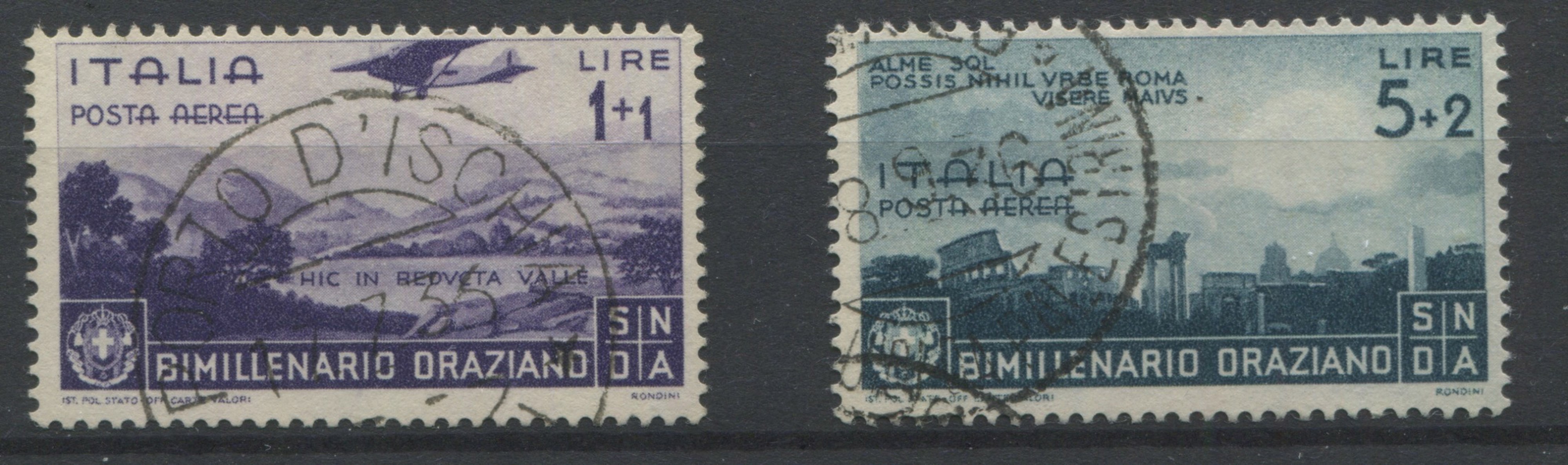 1936 – Regno d’Italia – “Bimillenario della nascita di Orazio” – Posta aerea – i due alti valori usati (Sass. A98 e A99).