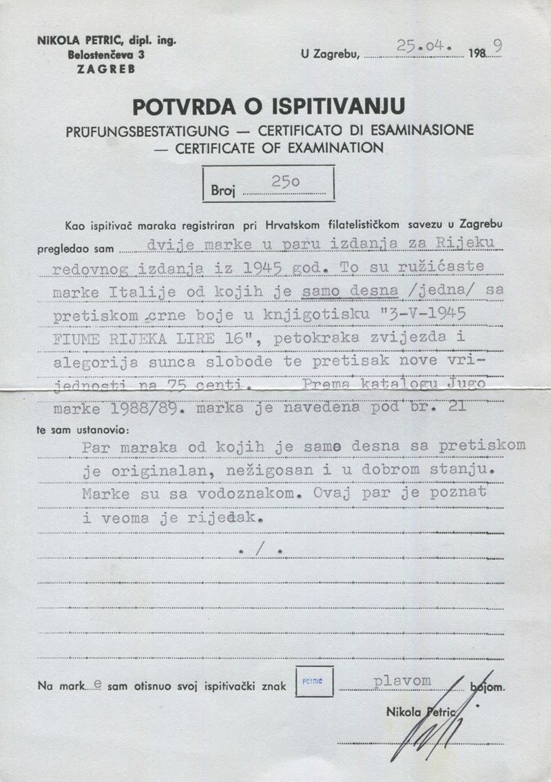 Gomma integra - Unica, delle quattro coppie conosciute, con la sovrastampa completa - Grande rarità del settore - Cert. Petric